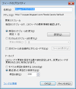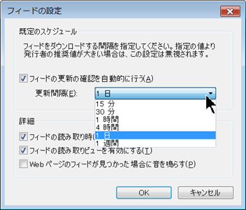「フィードのプロパティを表示」でフィードの更新間隔を設定できます。
