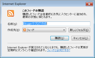 すると次のようなページが表示されるので「このフィードを購読する」をクリックします。(I.E7)