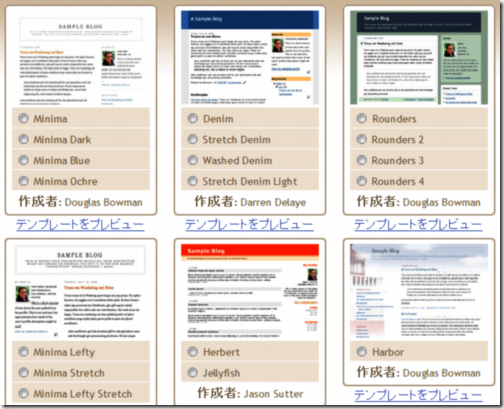 Bloggerの基本テンプレートは16種類、これにカラー違いが加わるので全部で38種類となります。