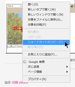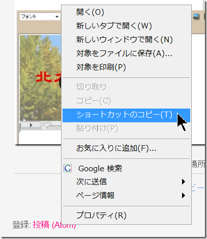 方法は「投稿(Atom)」上で右クリックして、「ショートカットのコピー」を選択