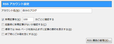 「RSS購読の管理」をクリック