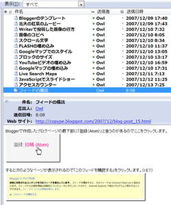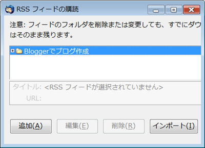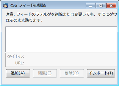 「フィードの購読」をクリックした時の画面
