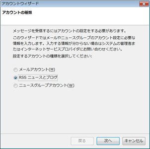 「RSSニュースリーダーとブログ」にチェックを入れて「次へ」をクリック