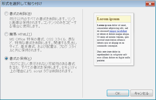 書式の保持を選択